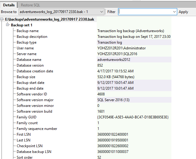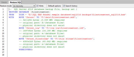 RESTORE FILELISTONLY, or RESTORE HEADERONLY