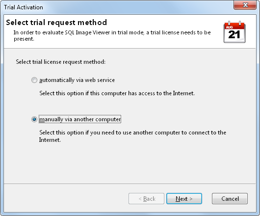 where this is not feasible, you can choose to manually activate the trial license using the following steps: